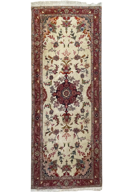 Crafted with a 50 raj knot density, this Persian Tabriz runner exemplifies the highest level of craftsmanship in rug-making. The term "raj" refers to the number of knots per 2.54 cm (1 inch) in the vertical direction. With 50 knots per inch, this runner boasts an impressive 2500 knots per square inch. This high knot density enables the creation of intricate patterns and delicate details, ensuring that your runner is not only a visually captivating piece but also remarkably durable and long-lasting.