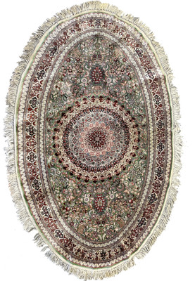 3'2 x 5'2 Oval Persian Qum Pure Silk Rug