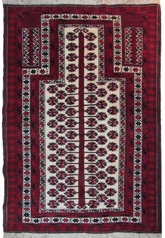 Baluch rugs are also known as Baluchi or Beluchi. The nomads make all of the Baluch Rugs with hand. Baluch or Baluchistan is the area between the borders of Iran, Pakistan, and Afghanistan. This is the reason why it is said that Baluch Rugs are a mixture of 3 regions. Where they're sold, however, gives them their label. If a Baluch is sold in Iran, it's a Persian rug. If a Baluch is sold in Afghanistan, it's known as a Herat product.