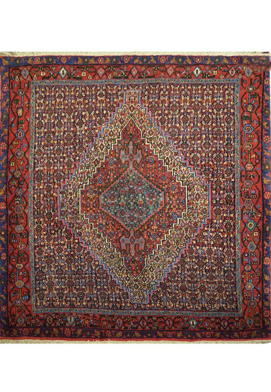 All relationship with the generality of Kurdish weaving ends with the symmetric knotting. Senneh rugs are extremely fine and have delicate patterns, including the Herati, all-over repeated botehs of remarkable elegance or other dense floral patterns made up of hundreds of tiny elements. Indeed, Senneh rugs disprove the theory that symmetric knotting is unsuitable to elegant and delicate curvilinear floral patterns.
