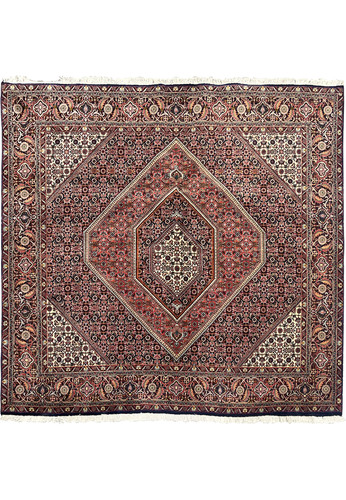 6'5" × 6'2" Square Bijar Persian Wool Rug with Rust, Navy & Ivory