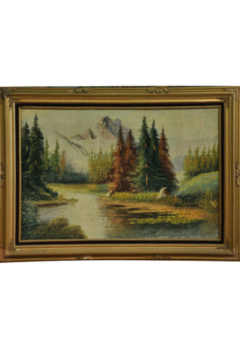 The condition of the rug is perfect. The condition of the frame is average. Some used spots visible. Vintage Look.