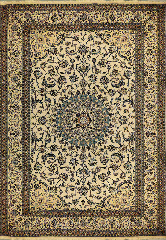 | Pile: | Wool and highlights of silk in the ivory colored parts |