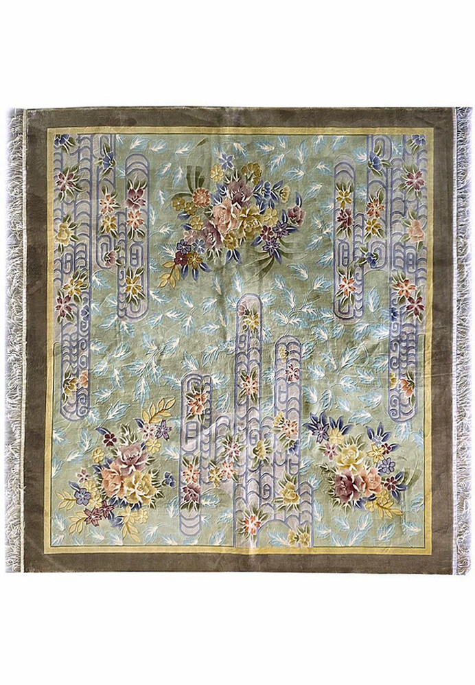 8 x 8 Vintage Floral Oriental Art Deco Square Rug